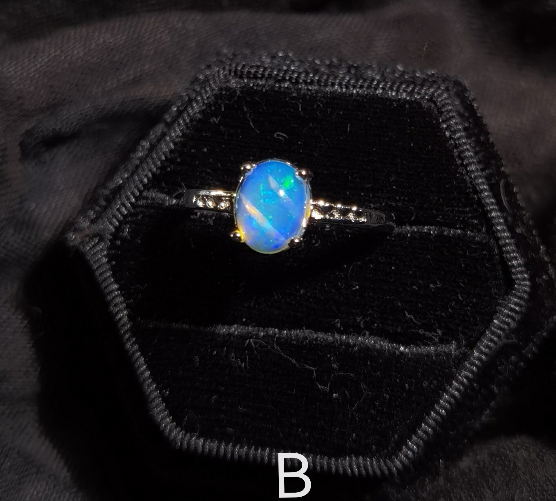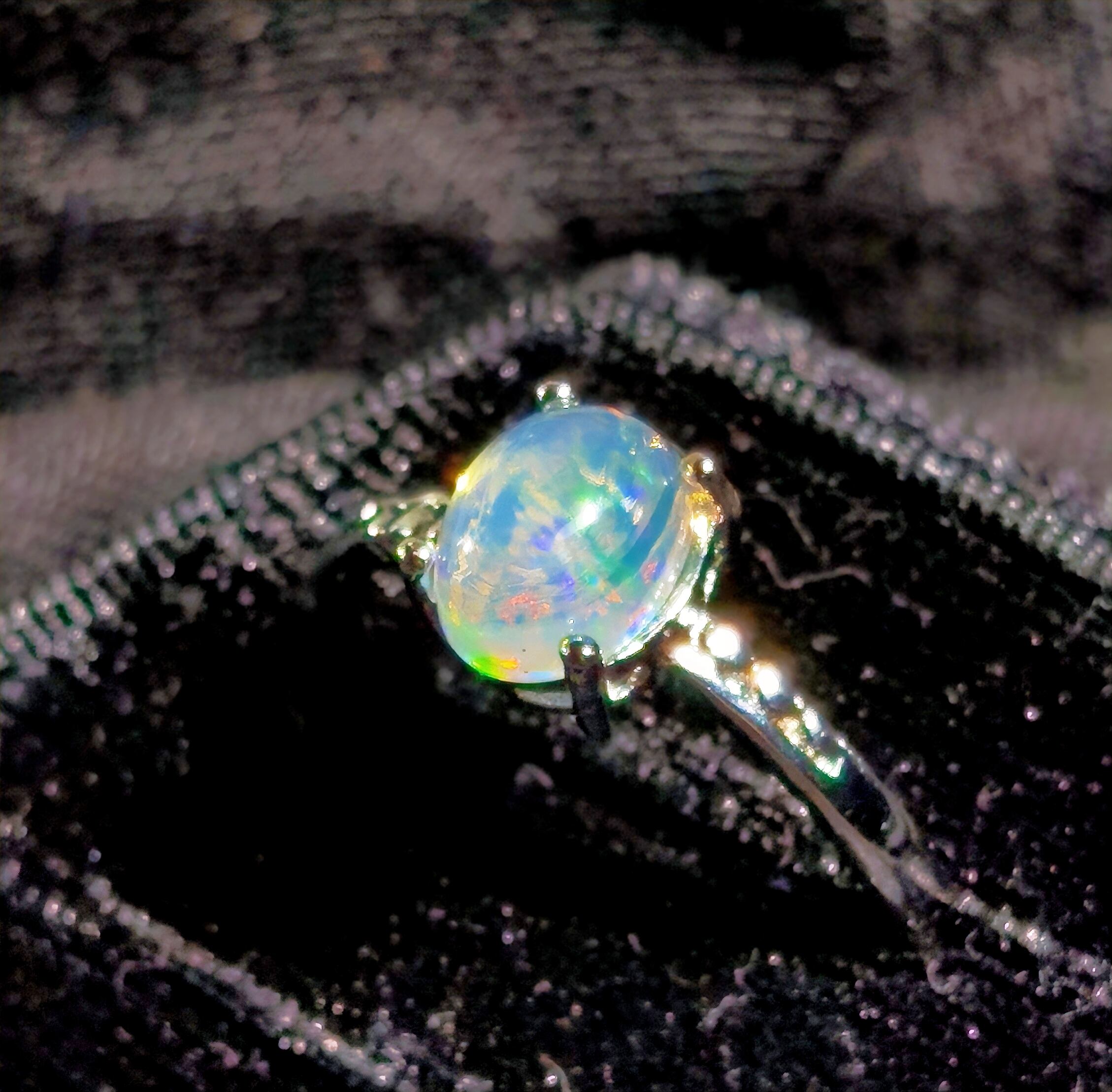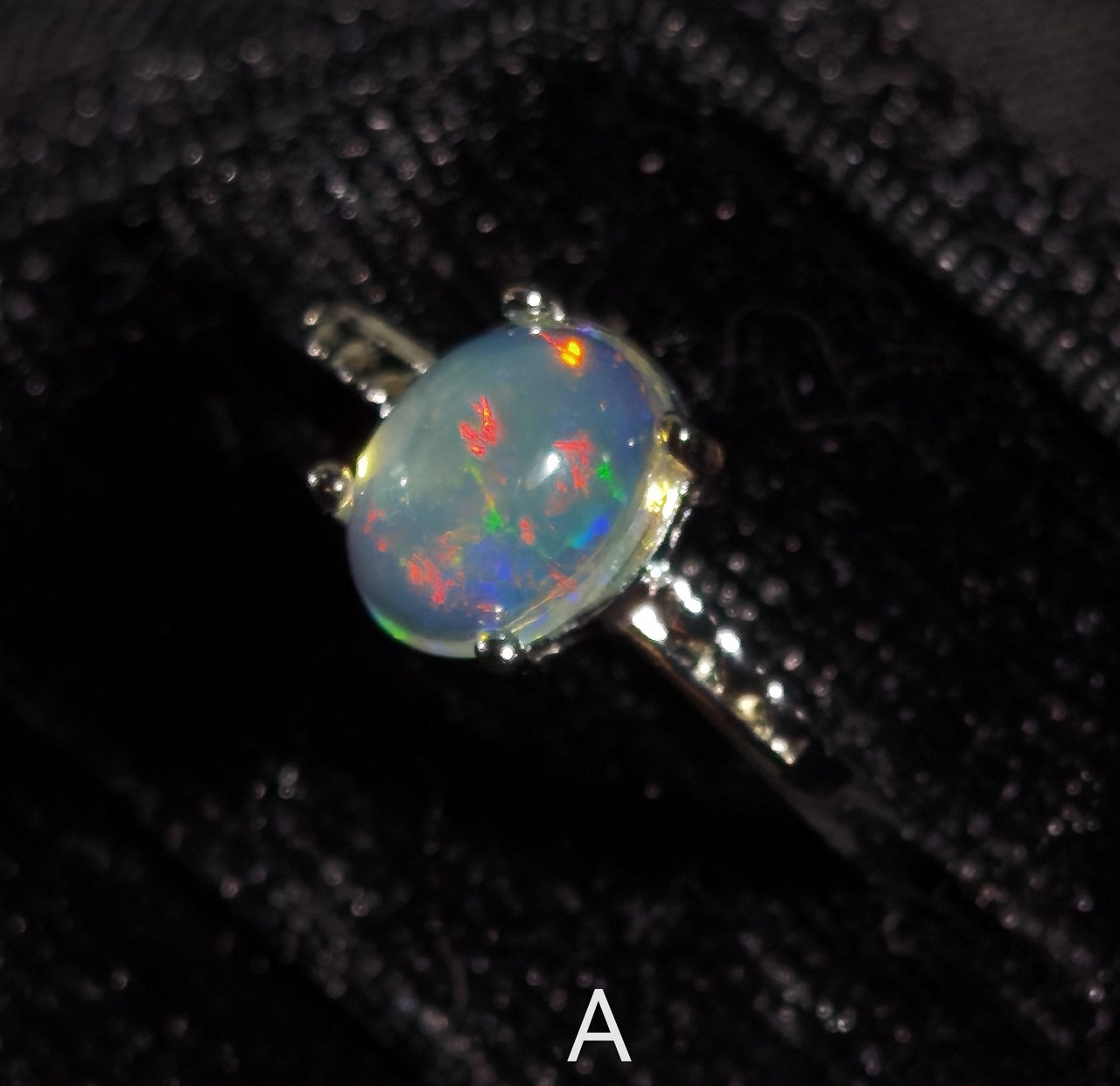 「使用した天然石」強遊色 透明感あり 白地にファイヤオパール 7.3㎜*6㎜ エチオピア産