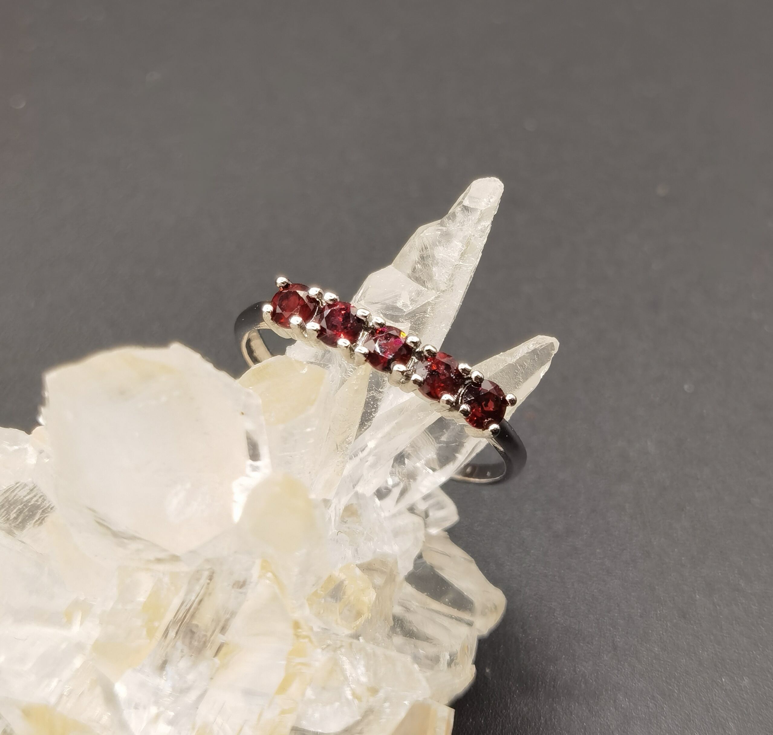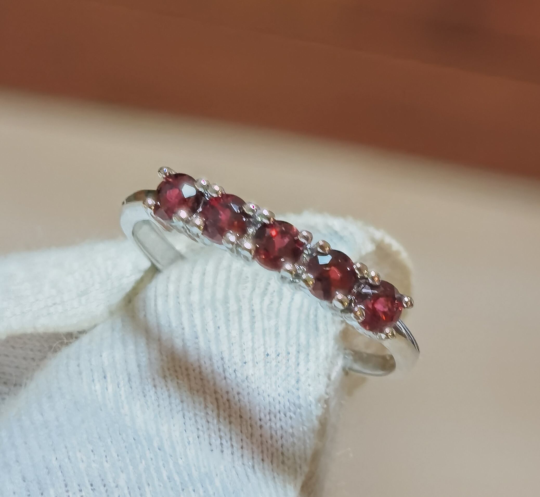 B ハーフエタニティ5個並び 3ミリ玉 レッドガーネット クラシックデザイン 普段使い