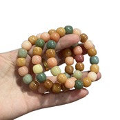 温かみのあるアースカラー(緑・茶・黄・橙)が組み合わされ、手元に自然の調和と落ち着きをもたらしてくれます。丸みを帯びたフォルムは優しい印象を与え、日常にも馴染むナチュラルなアクセサリーです。