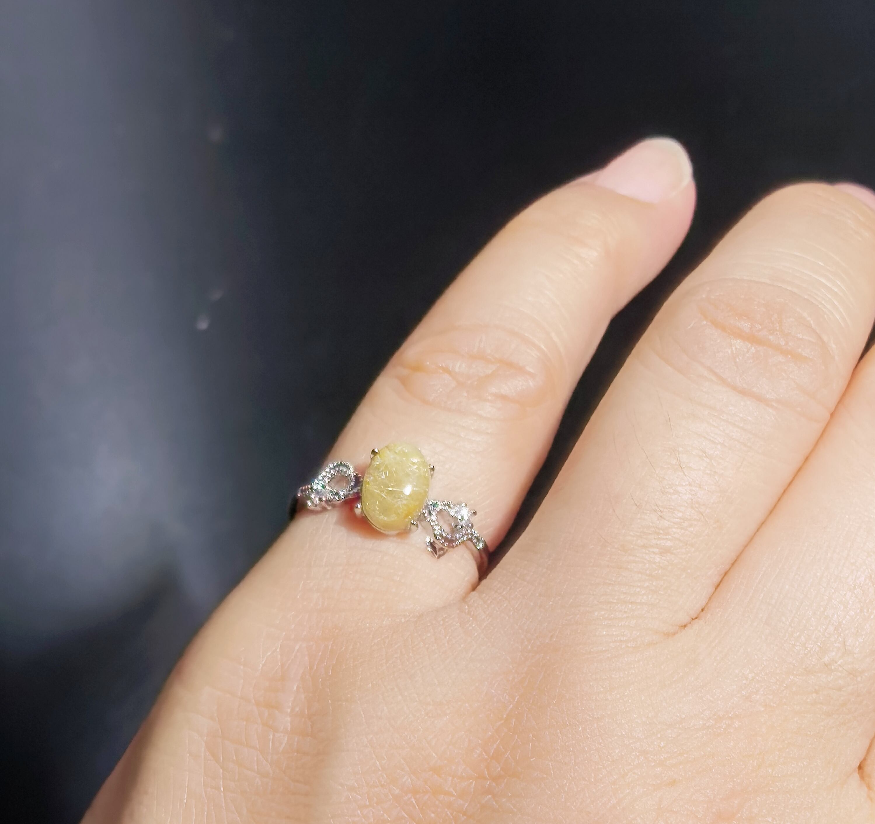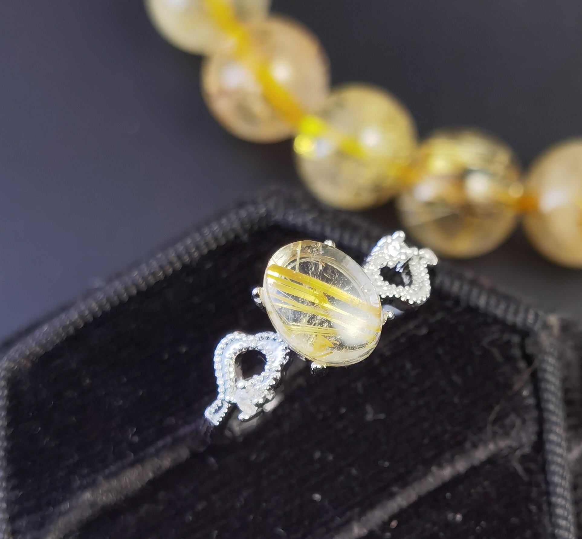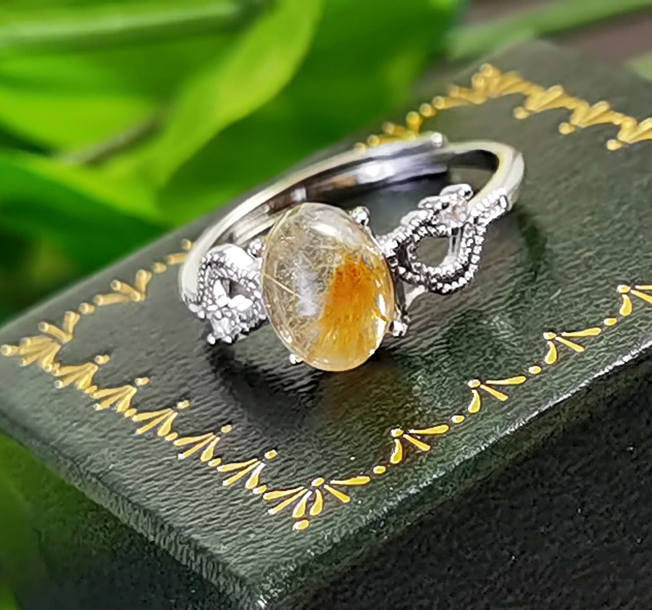 --☆力強い金線が輝くタイチンルチルクォーツを主役に、繊細な曲線美が映えるクラシカルなリングデザイン。