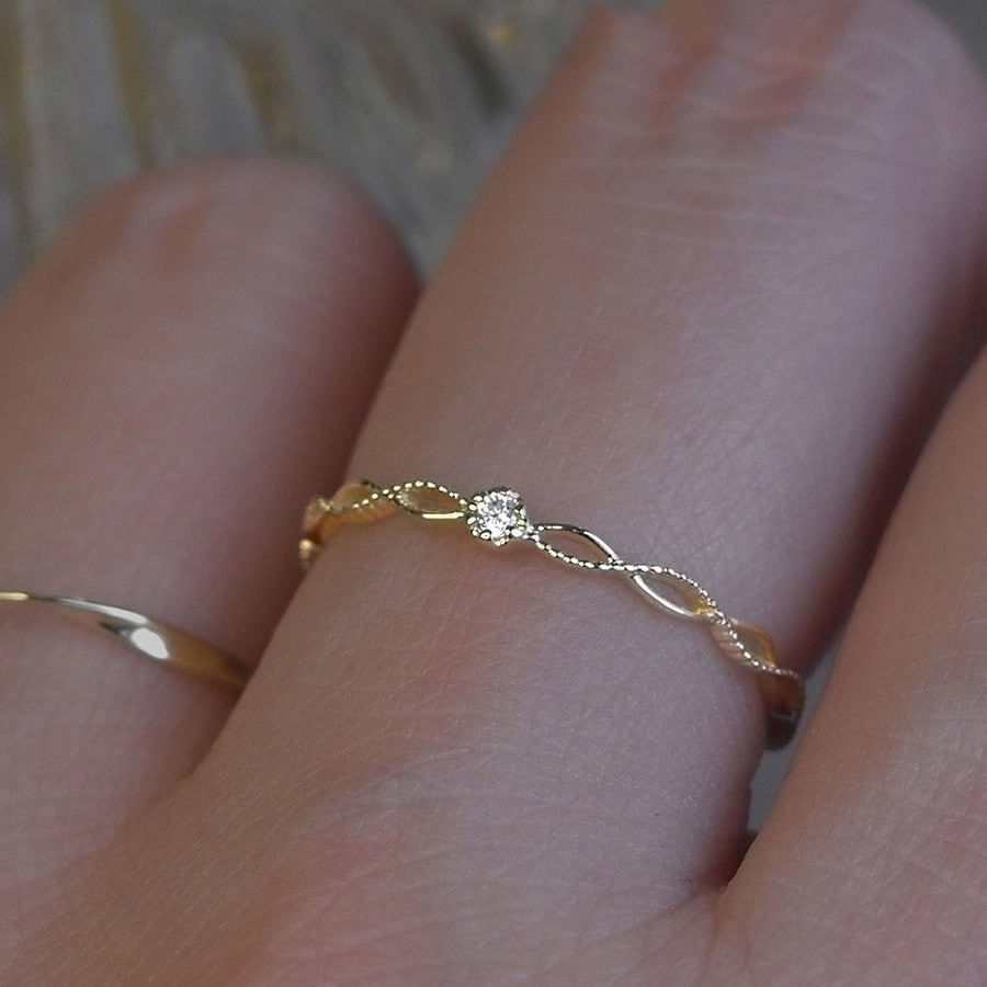 このリングはシンプルでありながらも華やかなデザインなので、さまざまなスタイリングに合わせることができます。カジュアルな日常のコーディネートにも、他のリングとの重ねづけや、他の宝石との組み合わせも楽しめます。