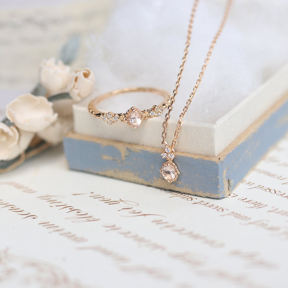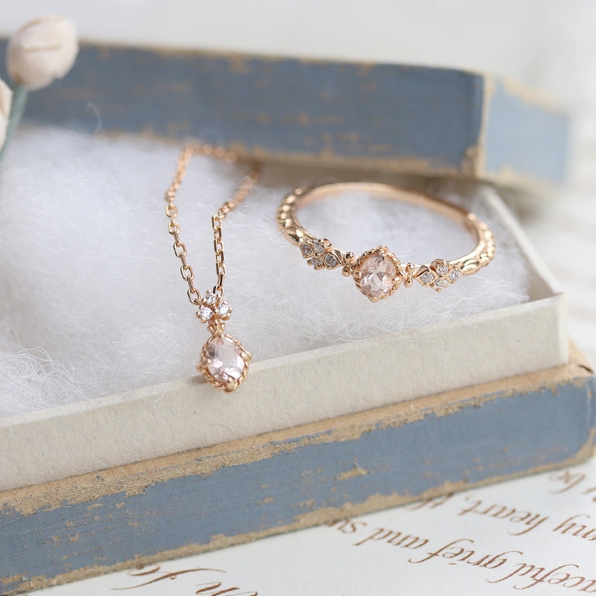 --☆このエレガントで繊細なモルガナイトリングとネックレスセットは、上品で優雅な雰囲気を醸し出します。