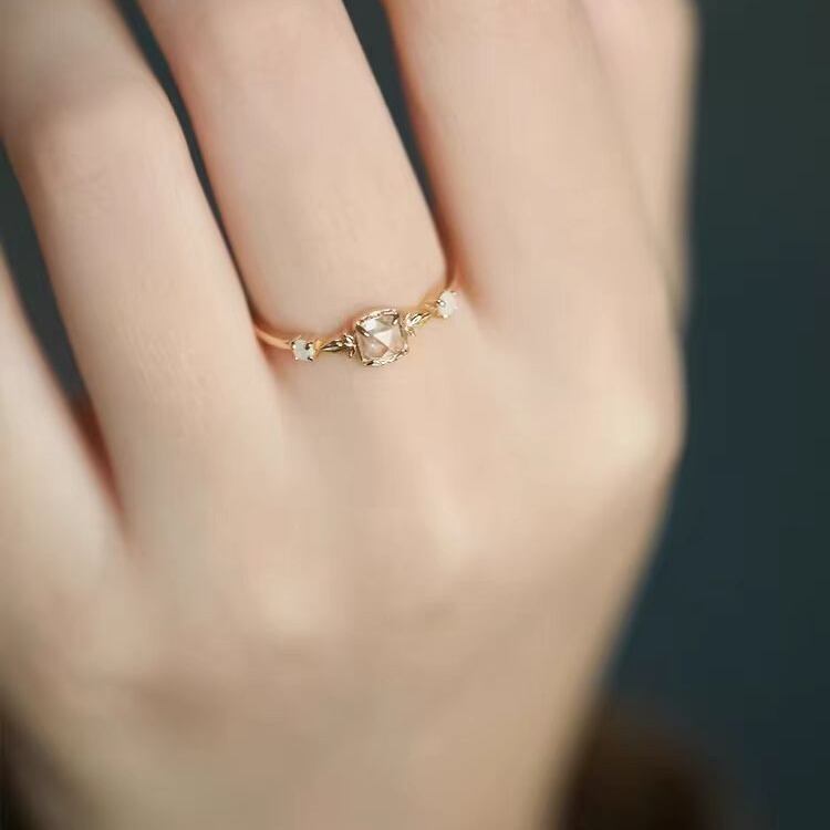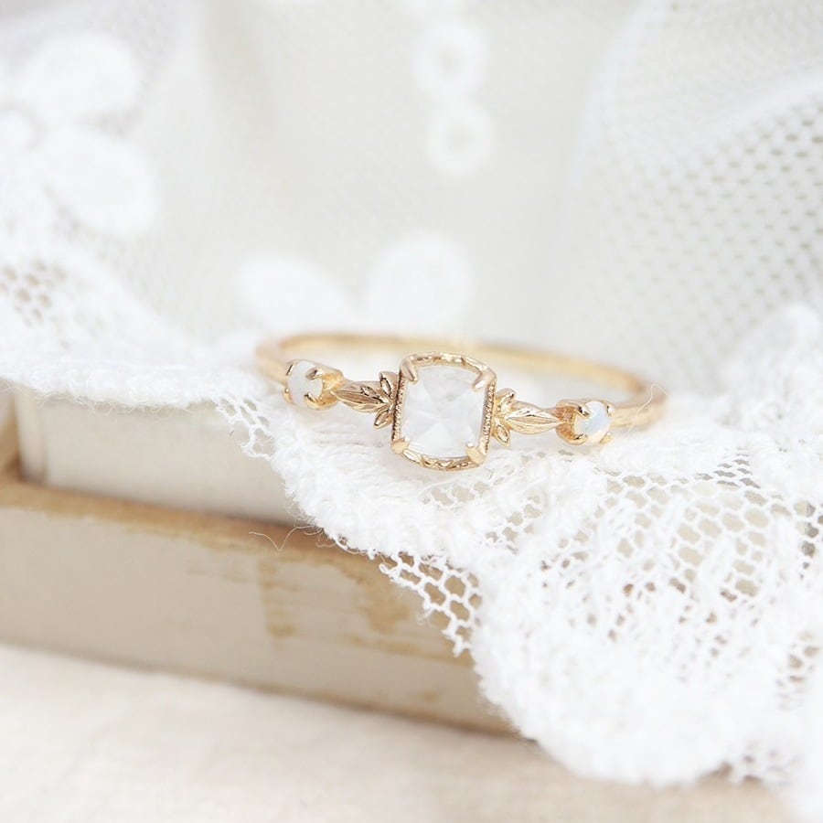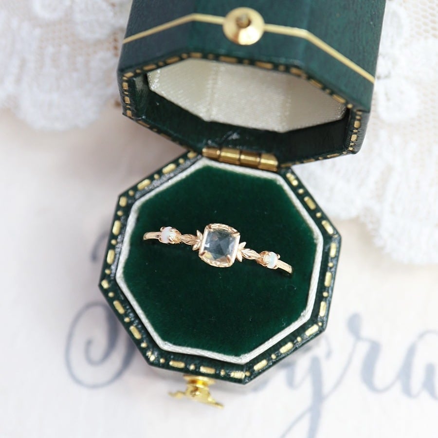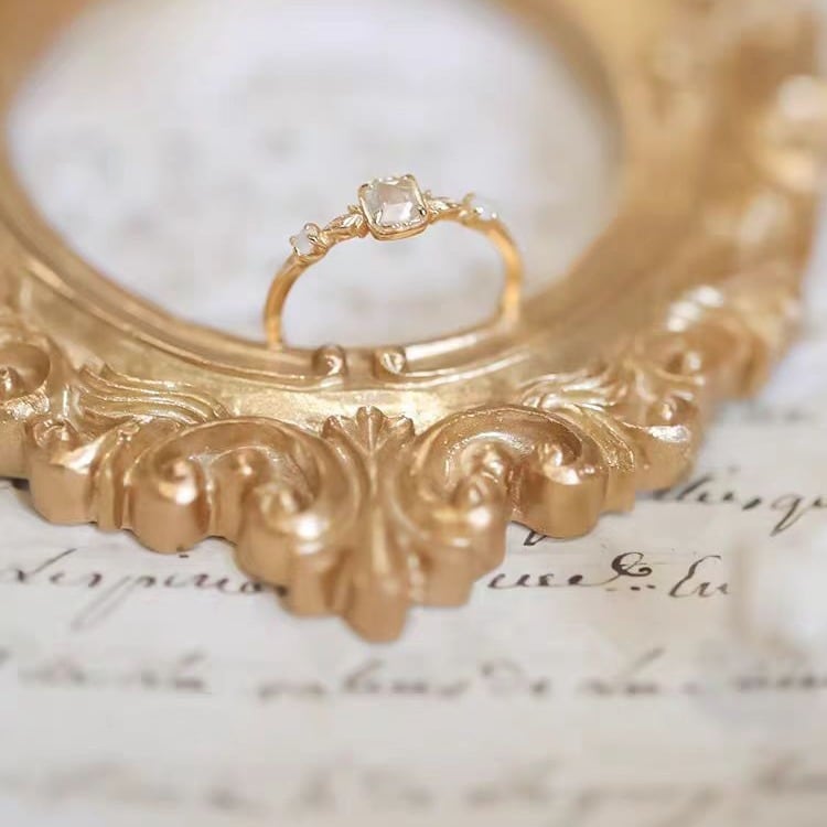 スクエアカットのクリスタルは、クラシックでありながらもエレガントな印象を与えます。