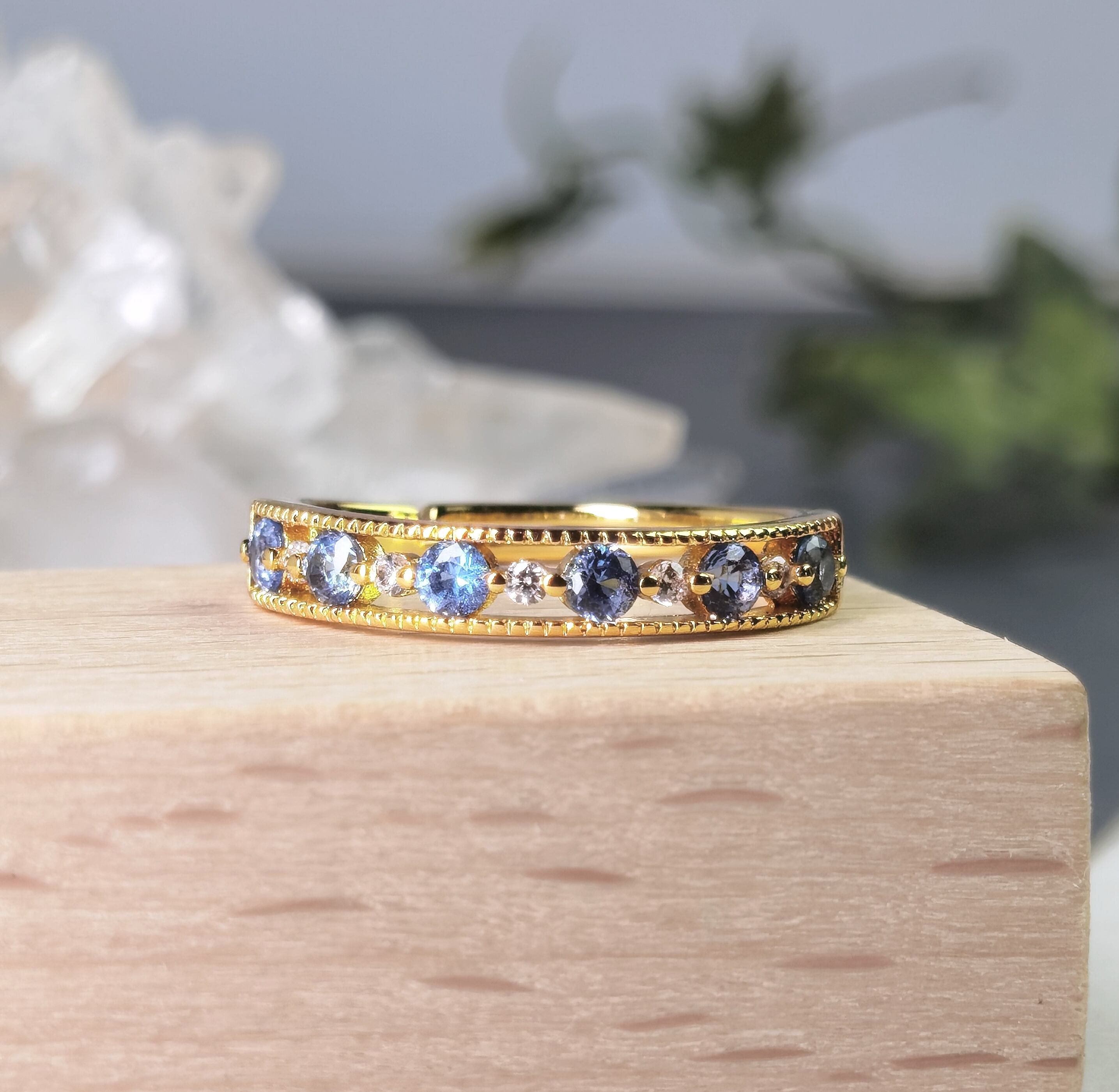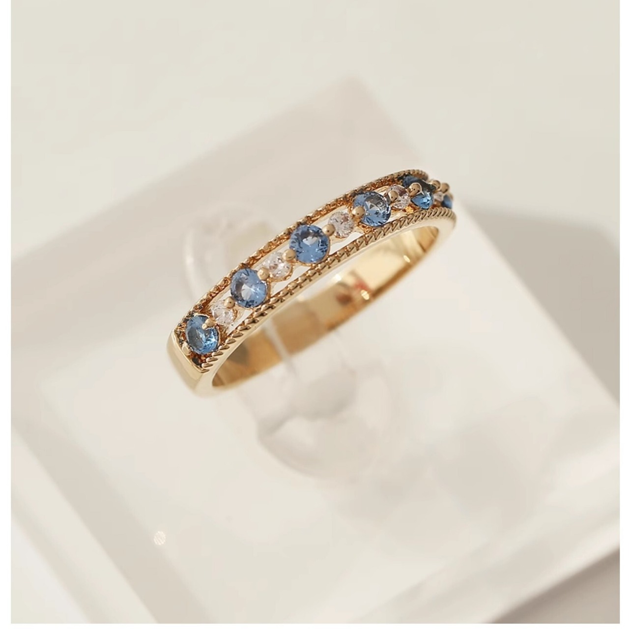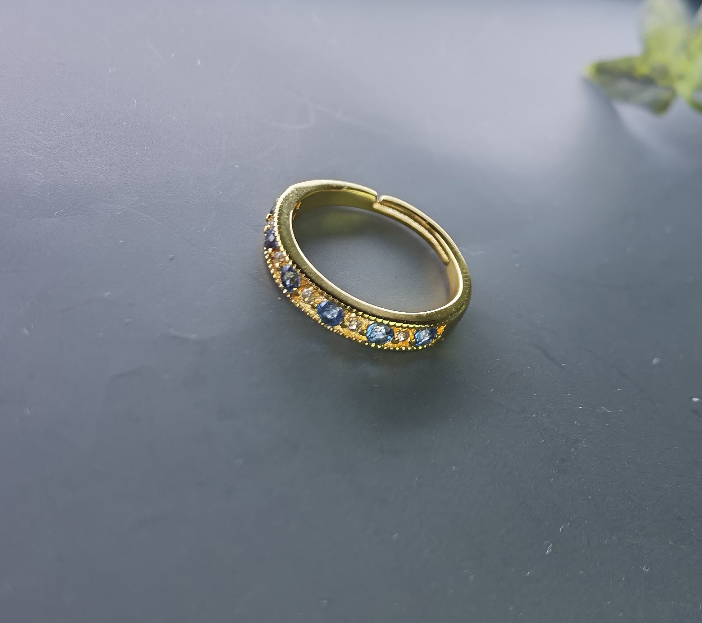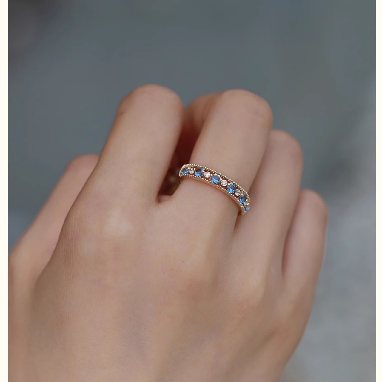 ◎海のように澄んだブルークリスタルを贅沢に並べ、華やかな輝きを指先に添えるリング。