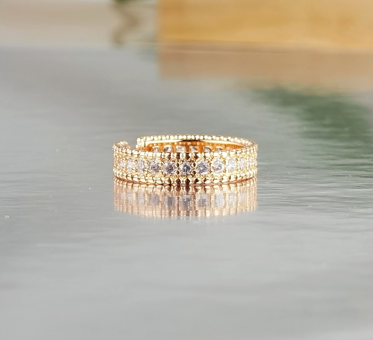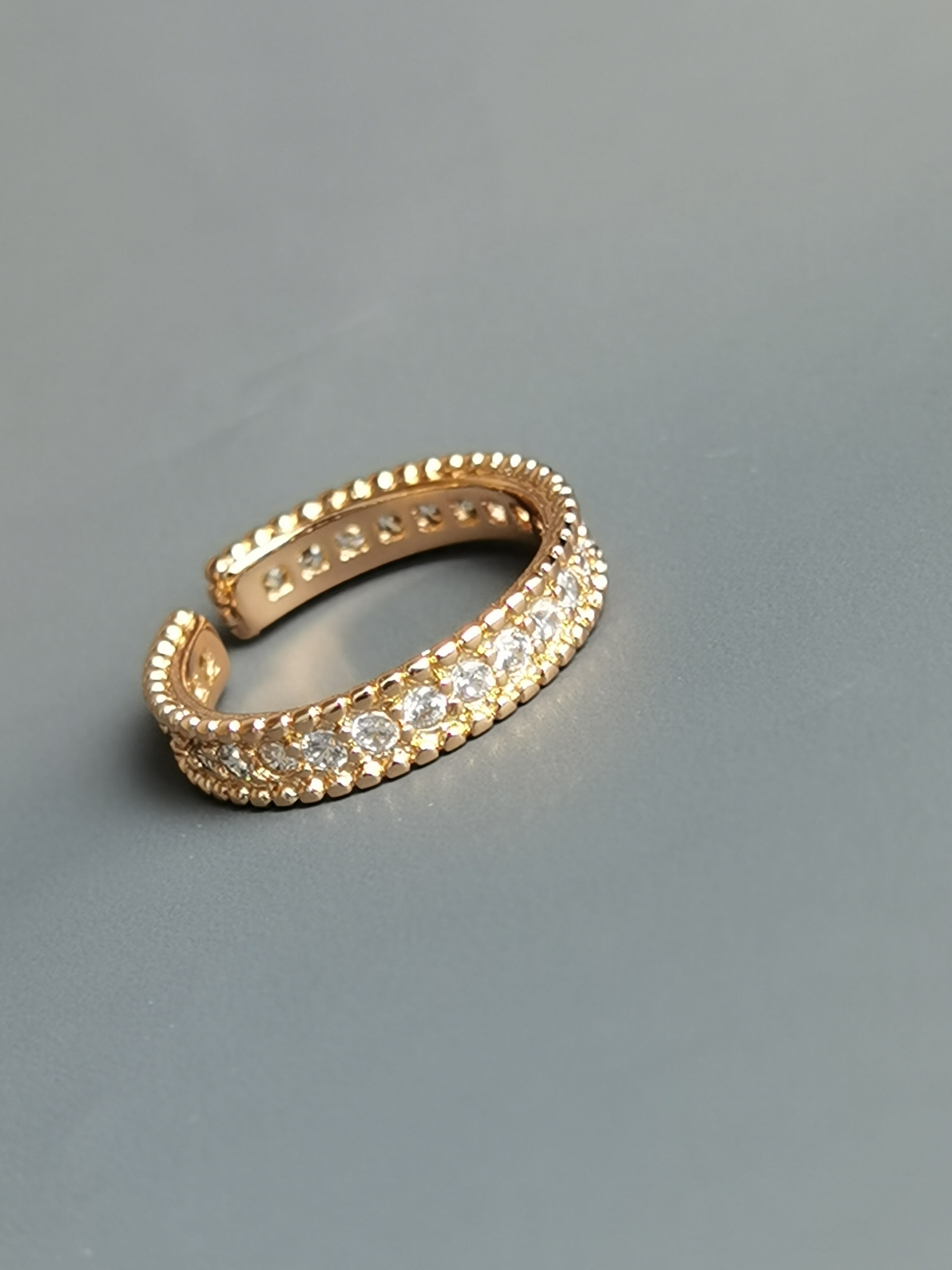--☆細かくセットされたクリスタルが、光を集めてきらびやかに輝くことで、手元を華やかに演出します。指に通すとその美しさが一層際立ち、他のリングとは一線を画する特別な存在感を放ちます。日常使いから特別な日まで、幅広いシーンでその魅力を放つこのリングは、長く愛されること間違いなしのアイテムです。