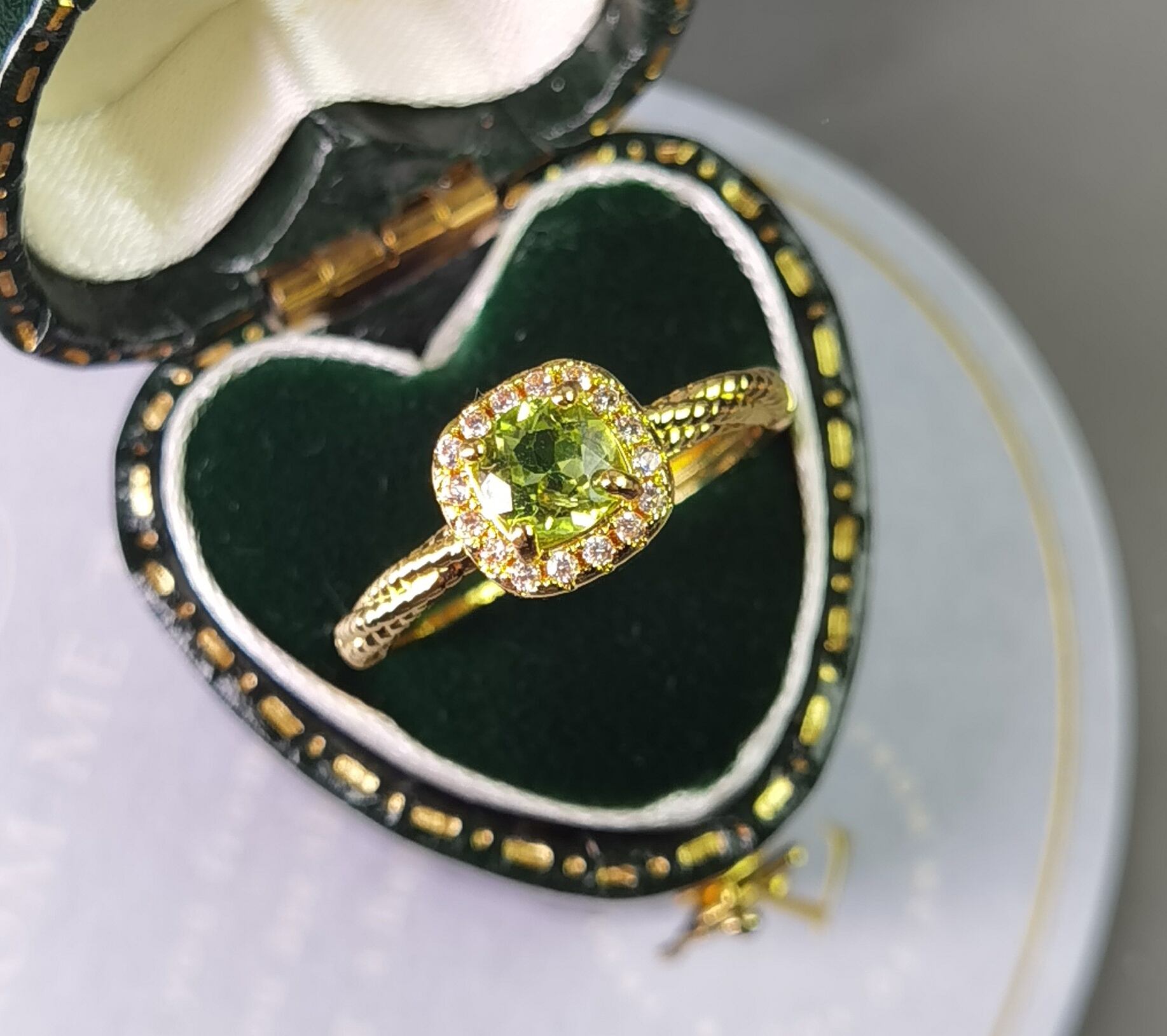 天然ペリドット×副石取り巻きデザイン✨ ゴールドの輝きで、毎日のコーデを格上げ