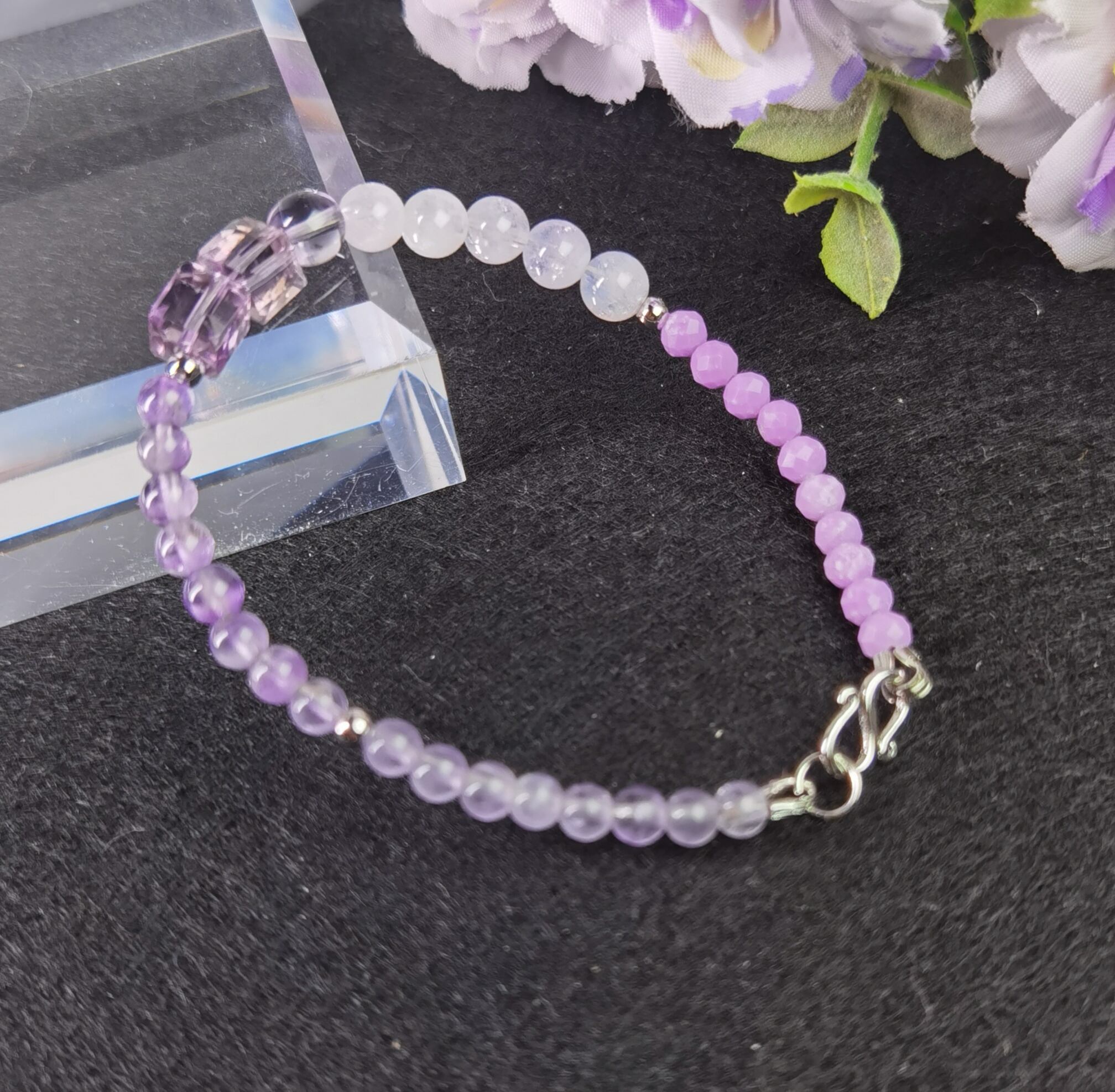 ☆やさしいラベンダーパープルから透明感ある淡紫まで、グラデーションのように重なる上品カラーが手元を可憐に彩る繊細ブレスレット。