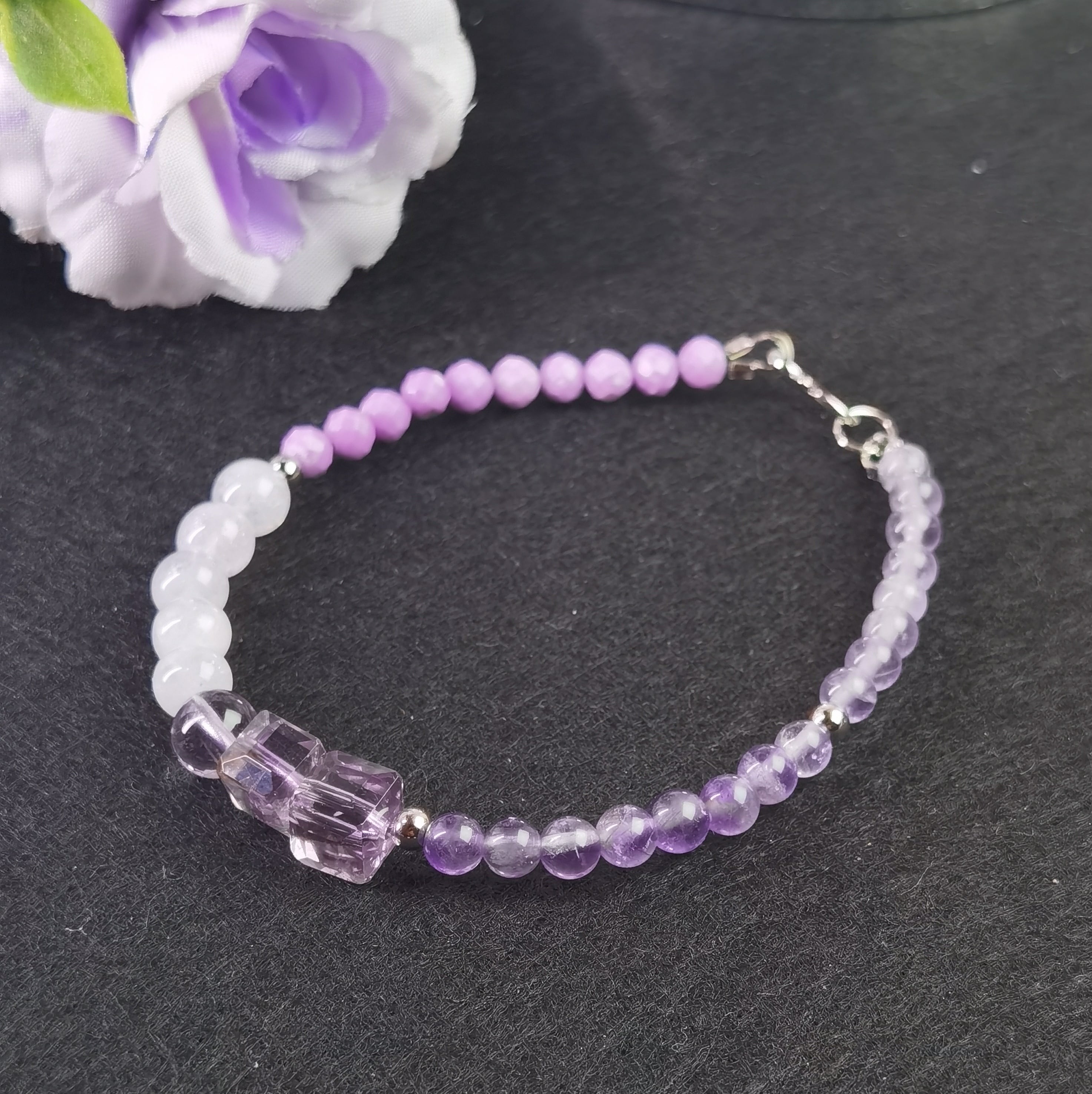 ラベンダーパープルの癒し*天然「レピドライト×アメジスト」繊細ブレスレット