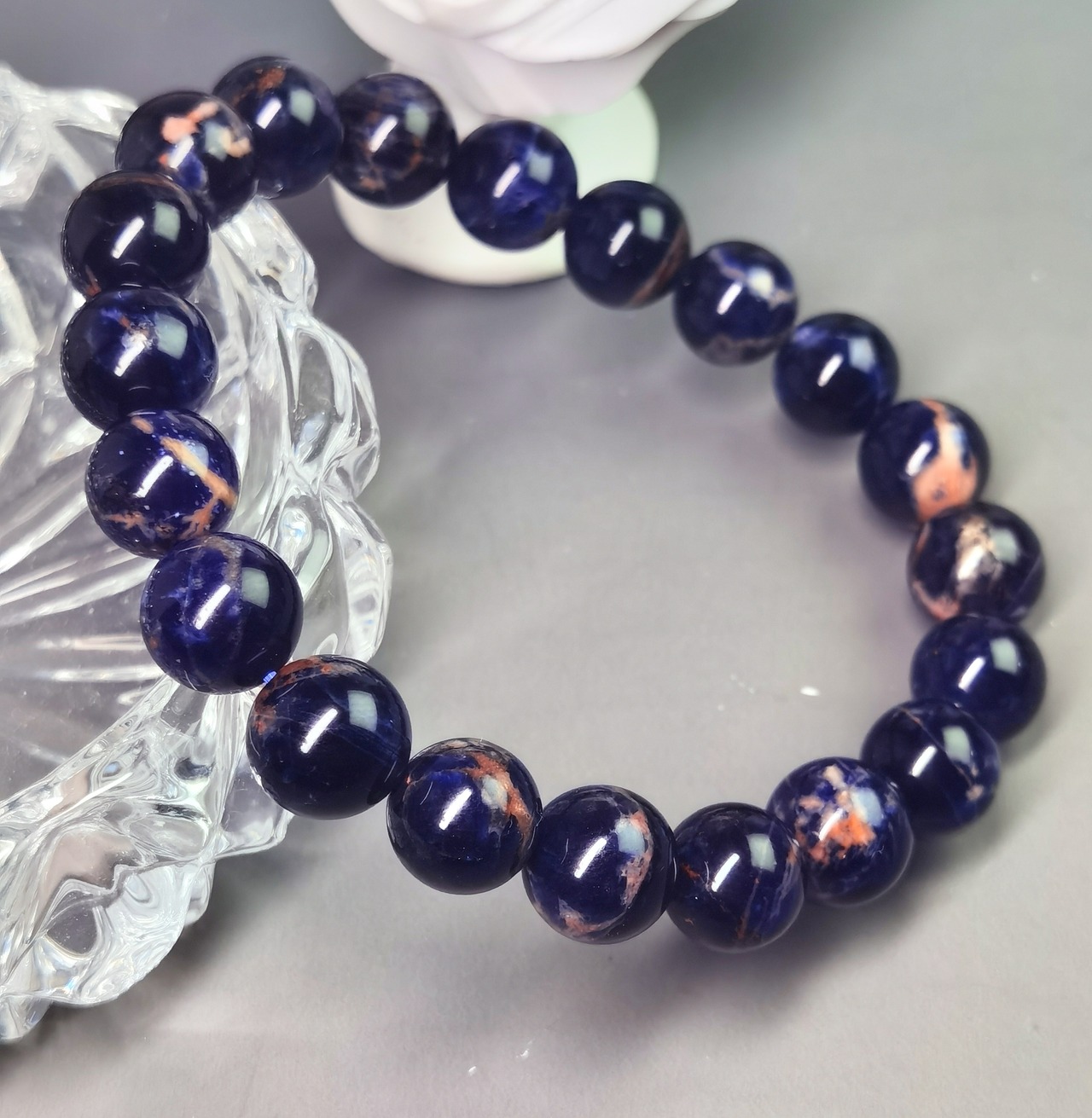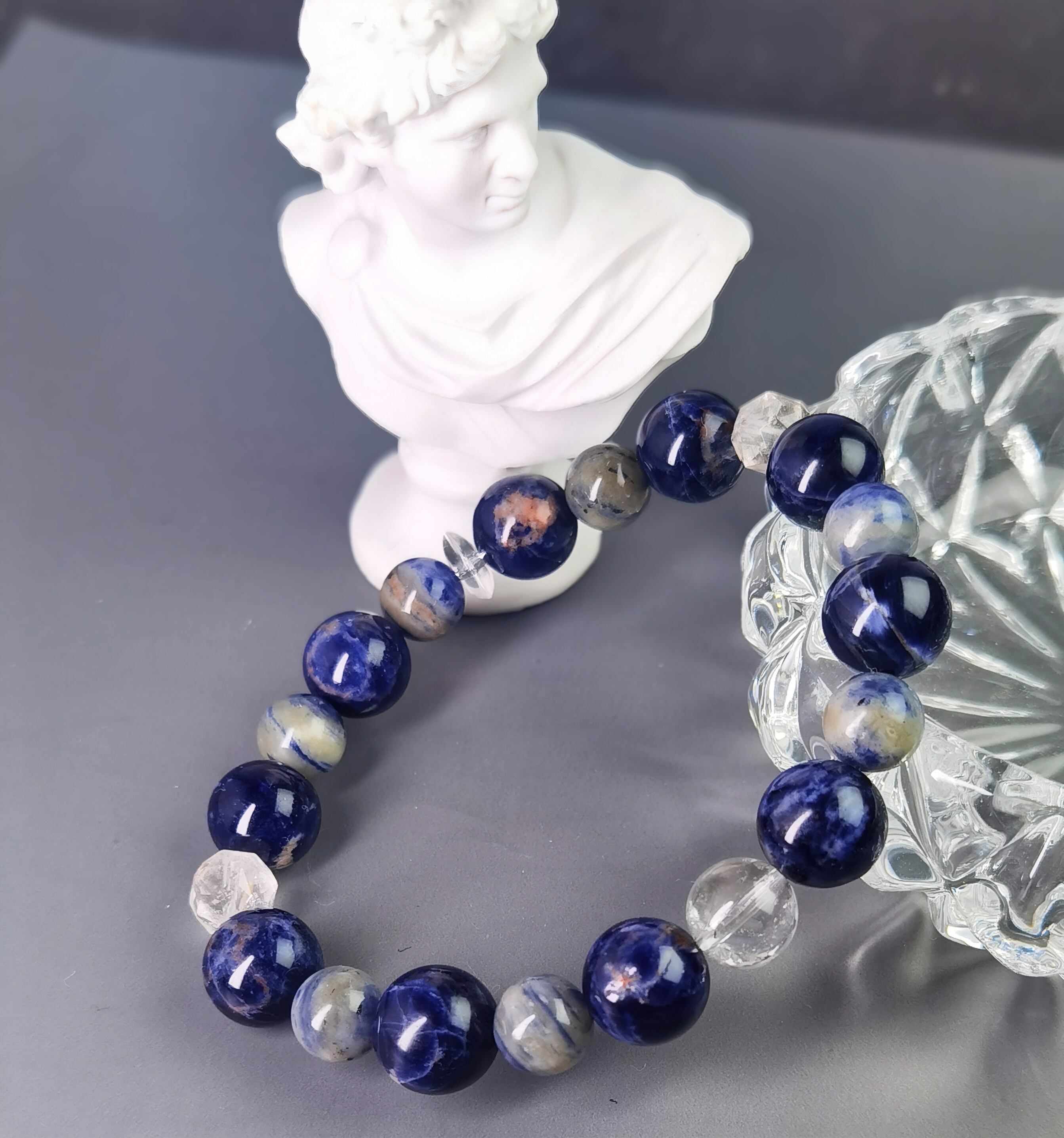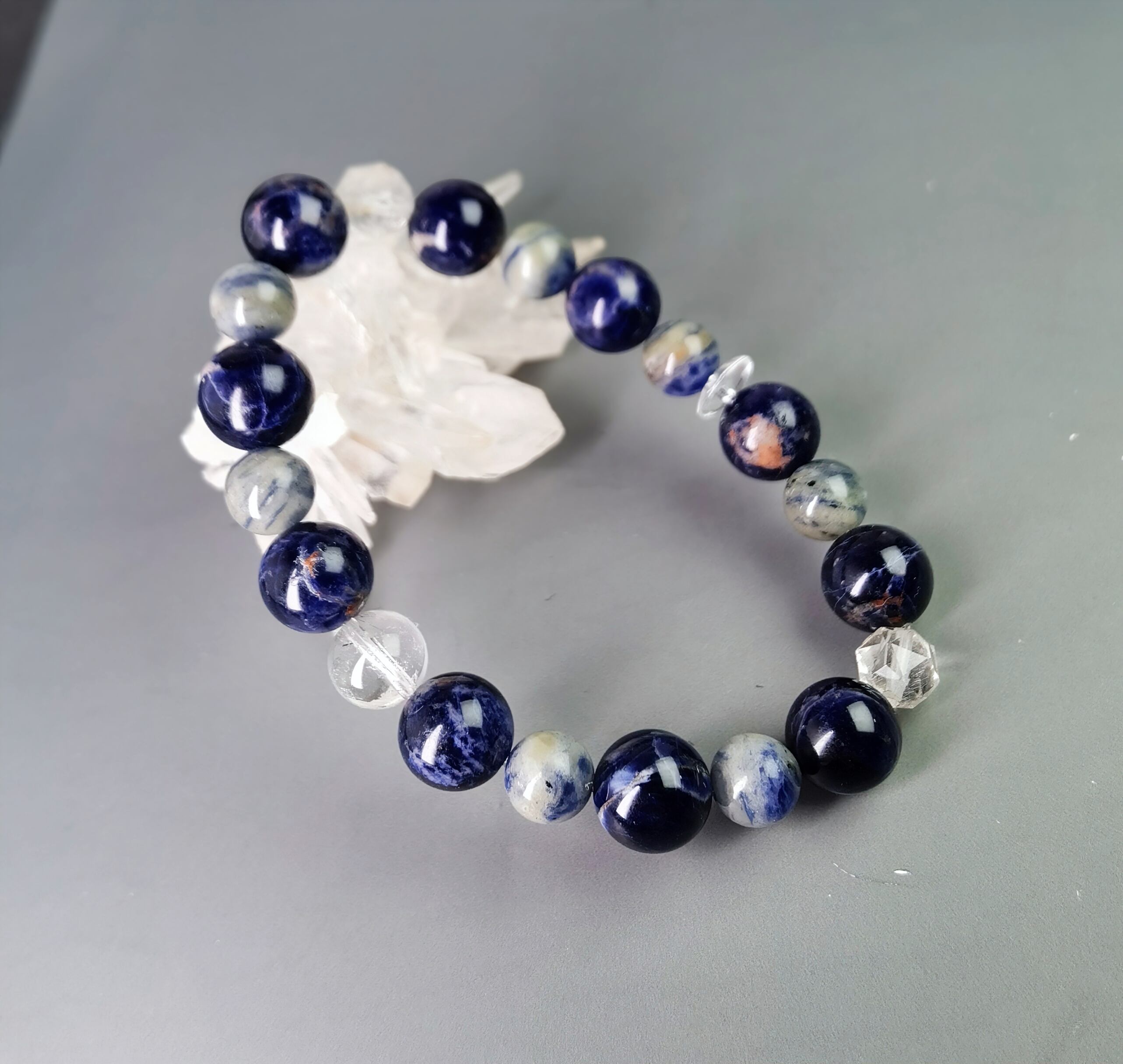 和モダン藍彩 ― 天然「レッドラインソーダライト×クリア水晶」 ブレスレット