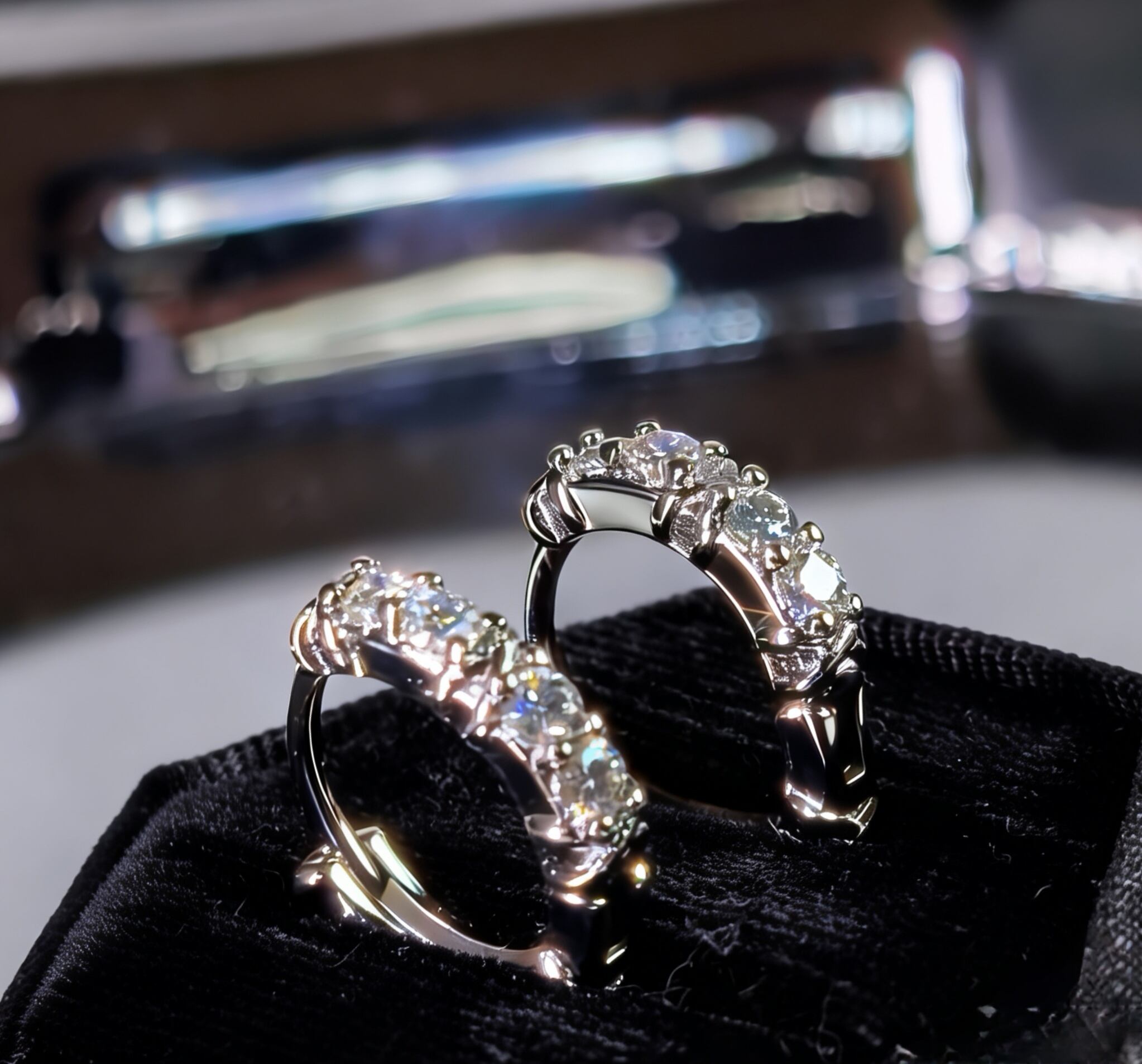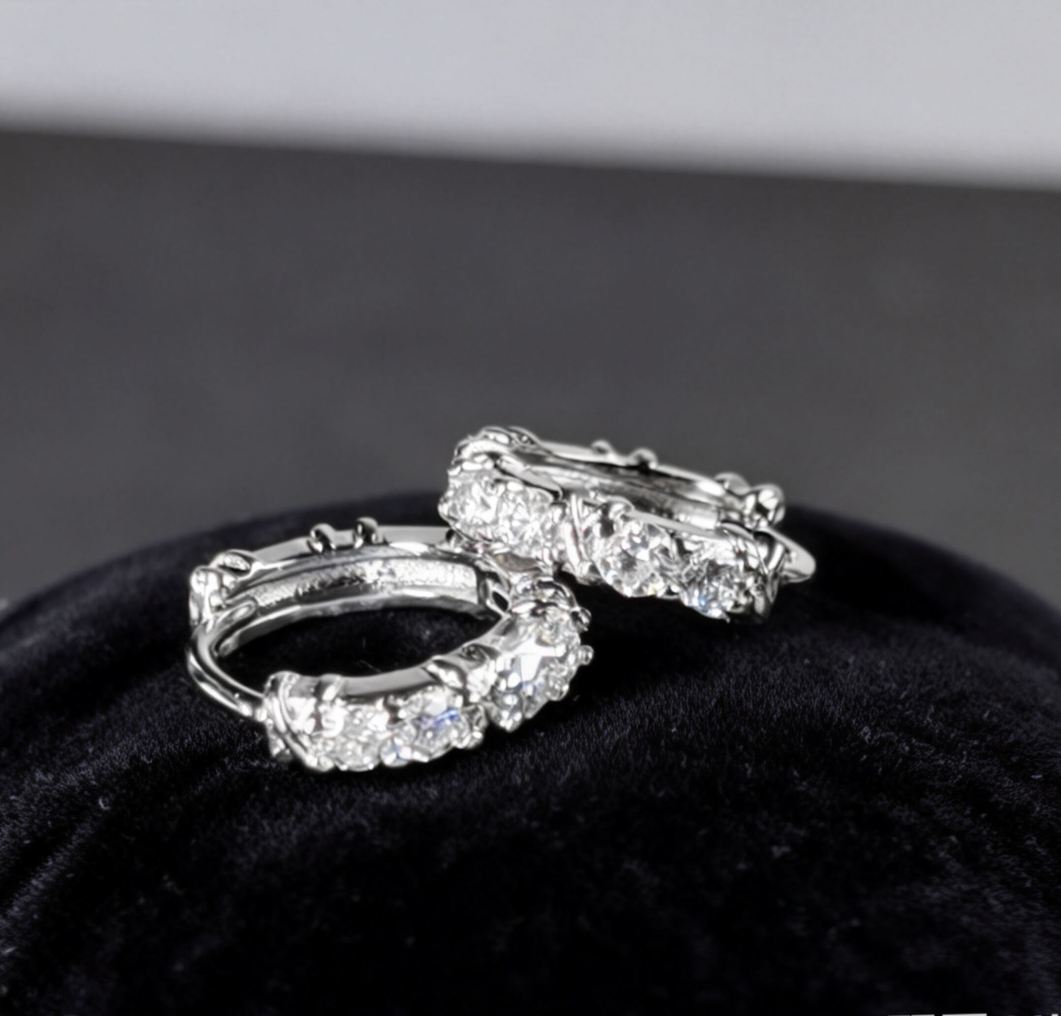 直径約3㎜のモアサナイトが繊細に並び、控えめなサイズながらも、光を受けてダイヤモンドのような美しい輝きを放ちます。