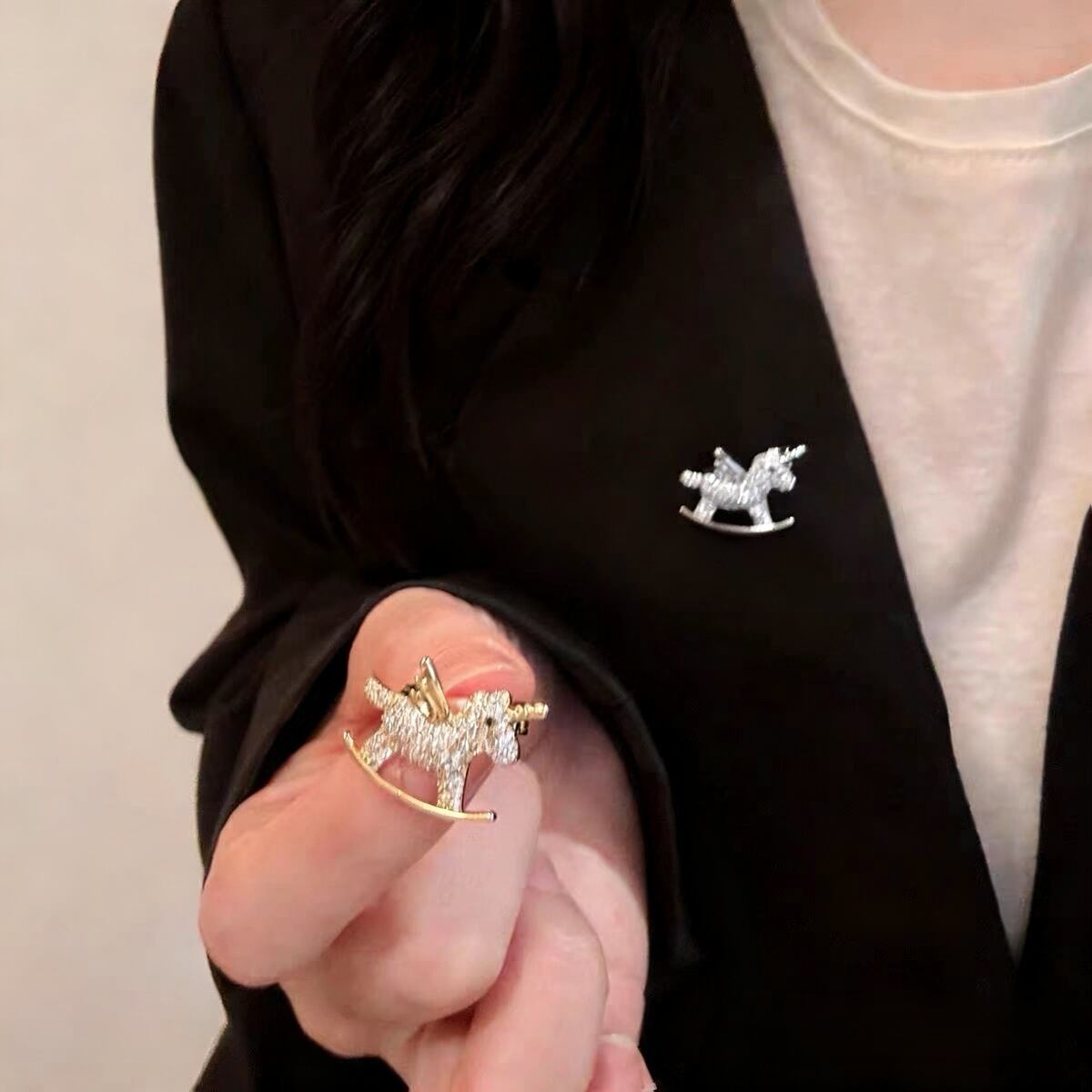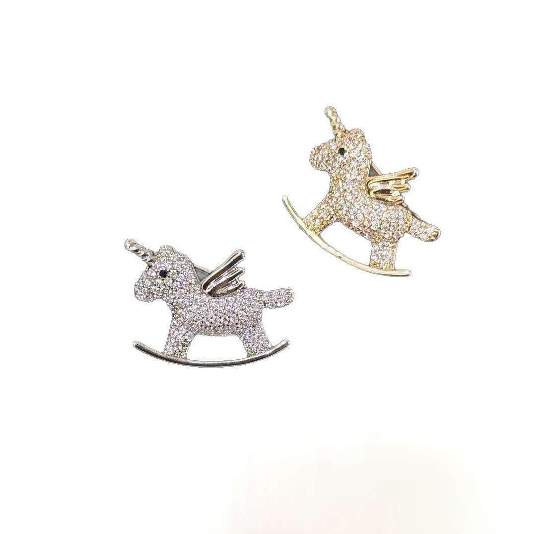 煌めくジルコニアを贅沢にあしらった、躍動感あふれる馬モチーフのブローチピン。