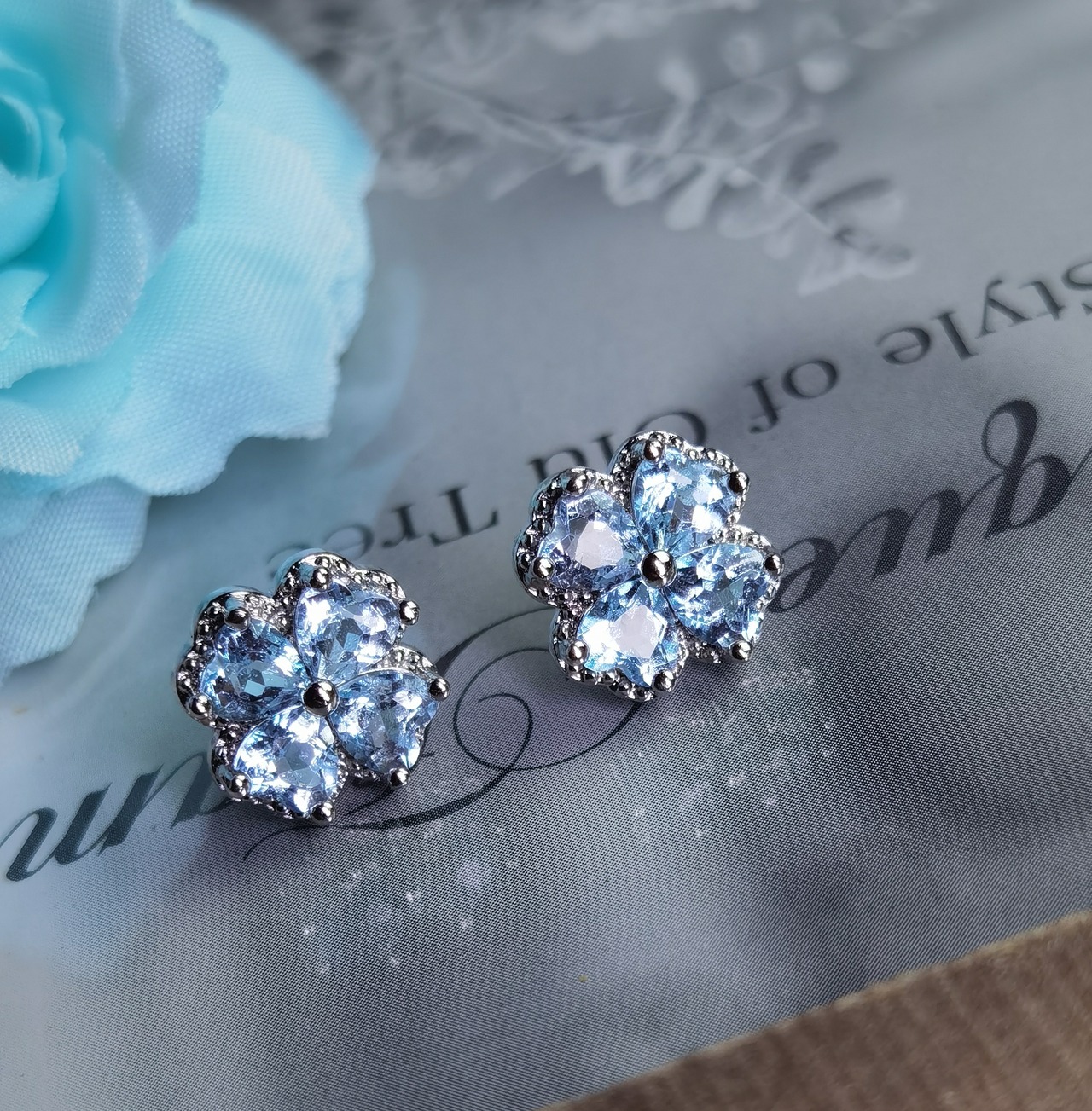“小さな幸運を耳元に "天然トパーズ「四つ葉」ピアス