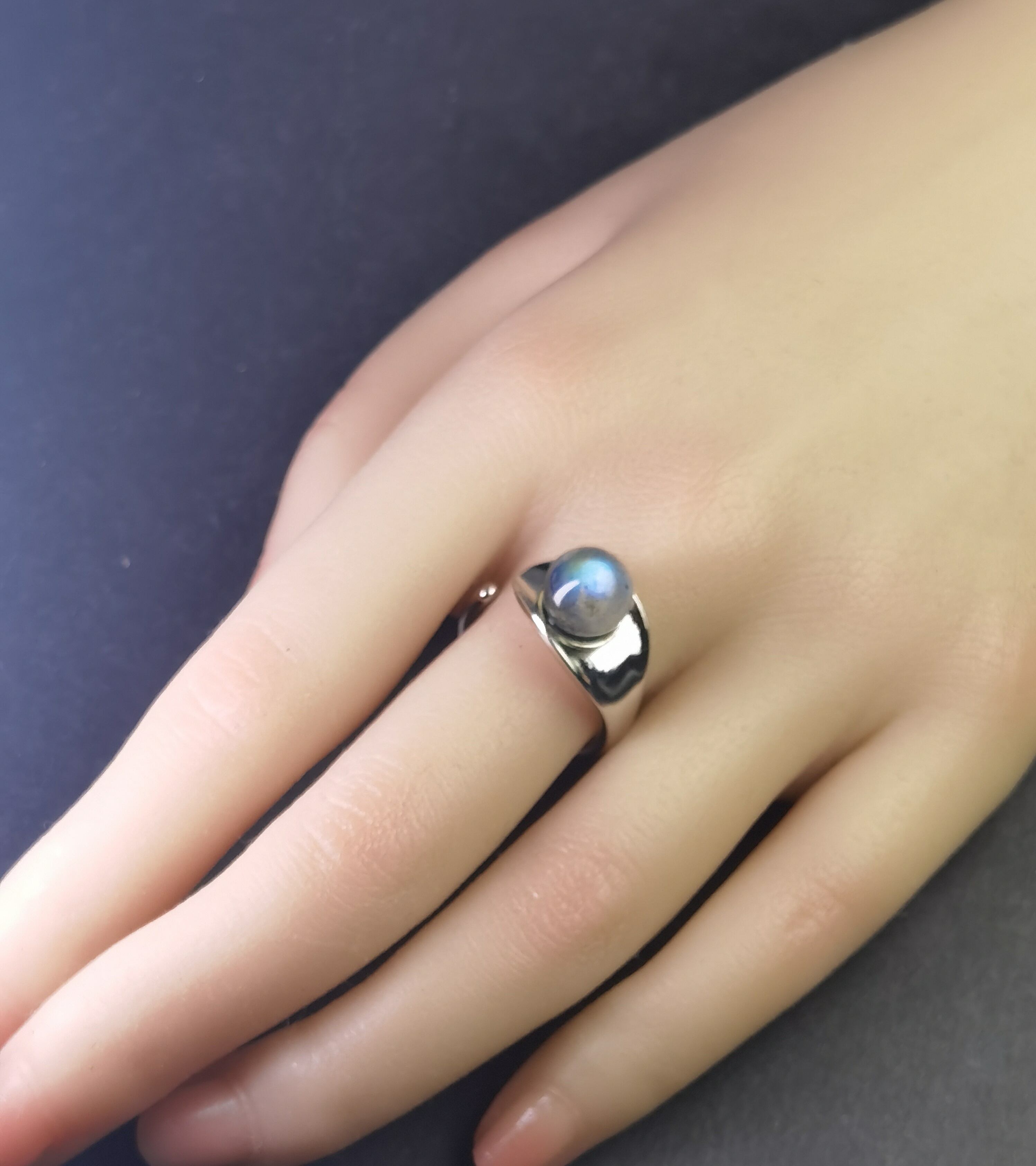 神秘ブルーシラー *天然5Aラブラドライト*北欧デザインリング