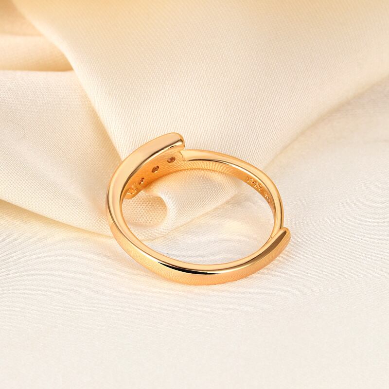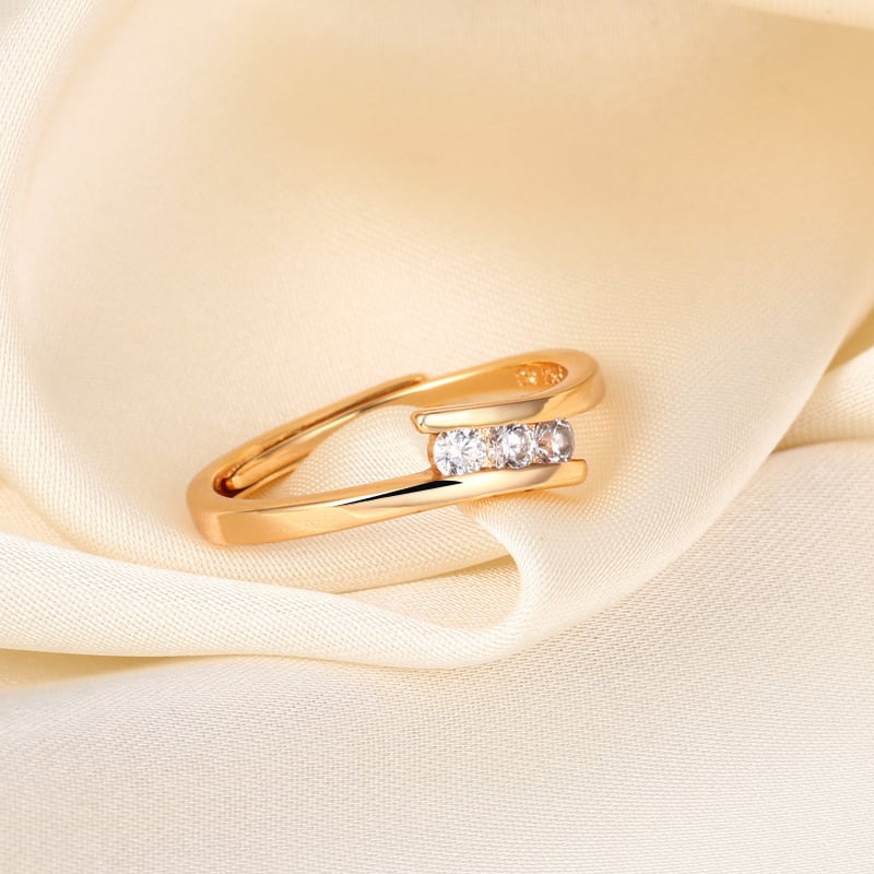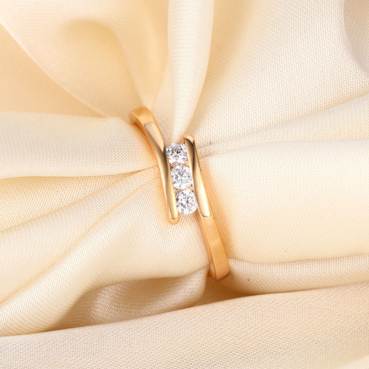 --☆こちらの「3点ダイヤ」ビジューリングは、シャンパンゴールドの美しいコーティングが施された、高級感あふれるデザインが魅力的です。このリングは、洗練されたシャンパンゴールドの光沢が、繊細でありながらも堂々とした存在感を放ちます。
