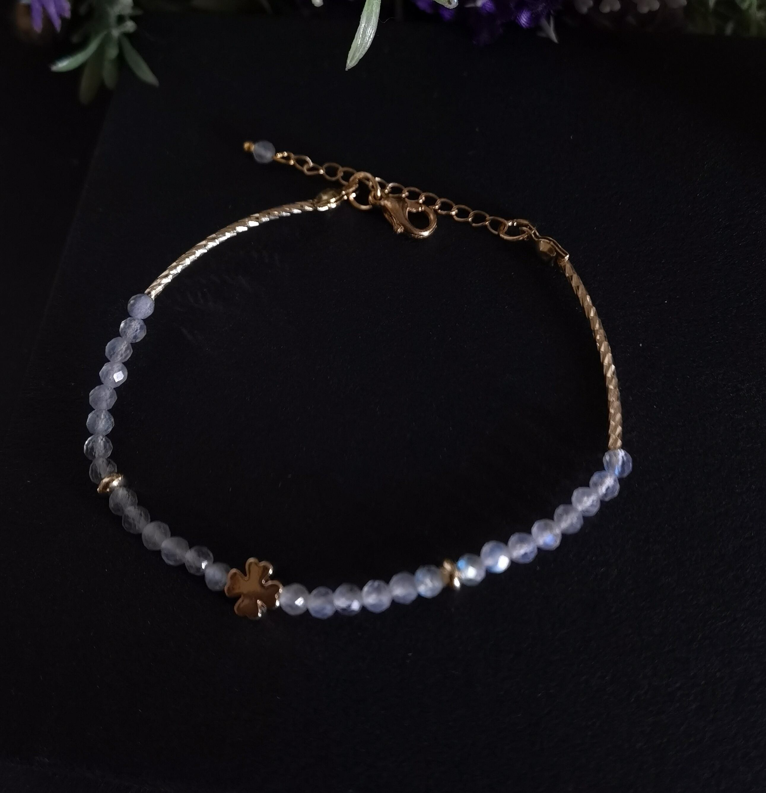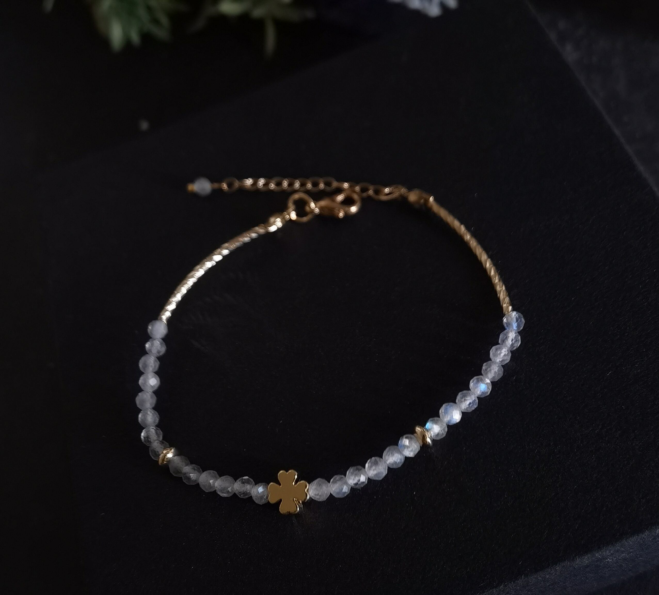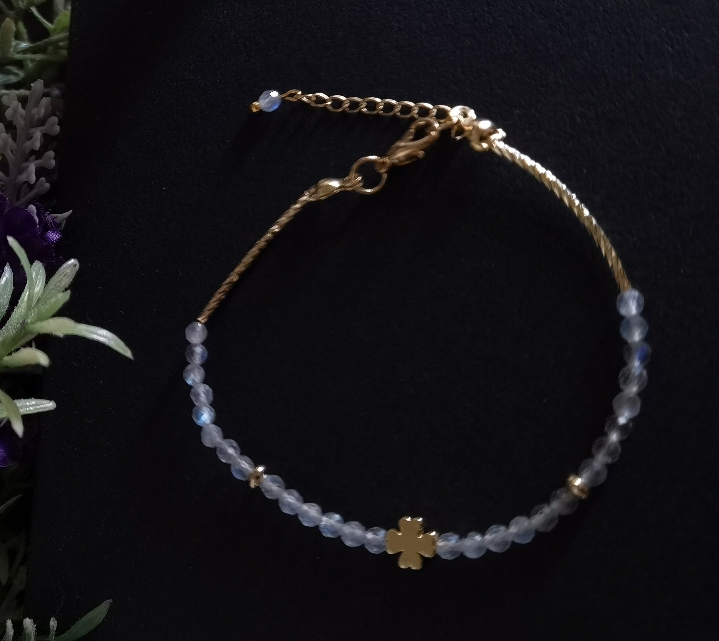 --☆幻想的なブルーの輝きが手首を彩る、繊細なラブラドライトのブレスレット。